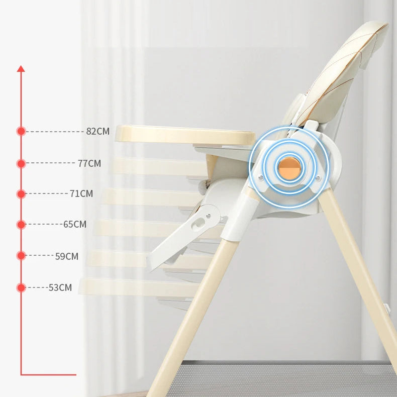 Föräldrar kan dessutom känna sig trygga med stolens stabila konstruktion och fem-punkts säkerhetsbälte, vilket minskar risken för olyckor. Samtidigt gör PU-läderkudden och den avtagbara övre brickan rengöringen enkel, vilket sparar tid och kraft efter varje användning. Med sina mjuka hjul kan stolen enkelt flyttas mellan rummen utan att skada golvet.
