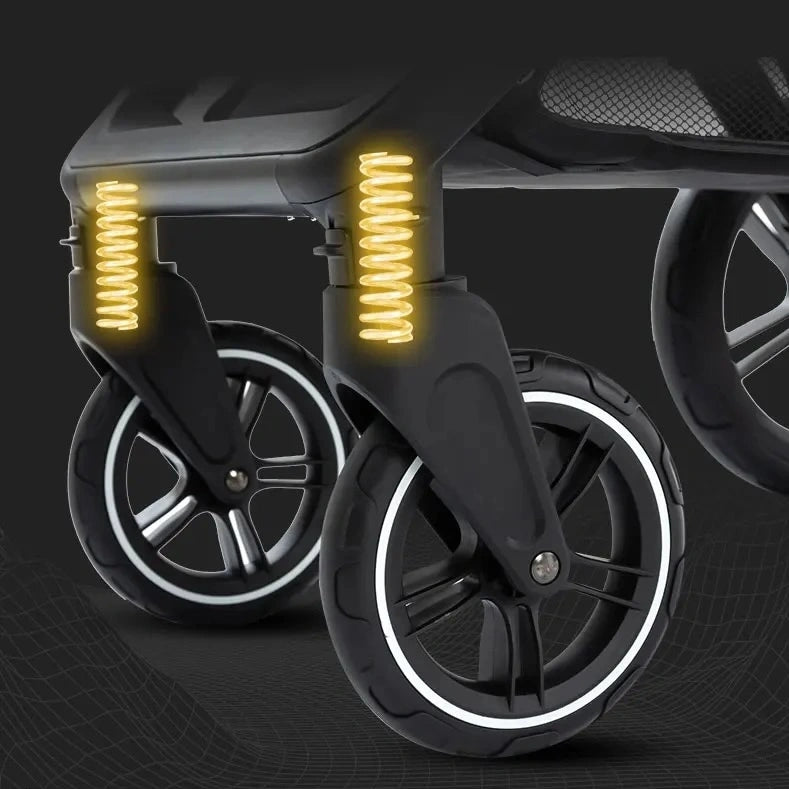 Vagnar med fjädring på alla hjul ger den bästa dämpningen, särskilt på ojämnt underlag. Barnvagn Premium och Optima har modeller med bra fjädringssystem, lika så Barnvagn Komfort.
